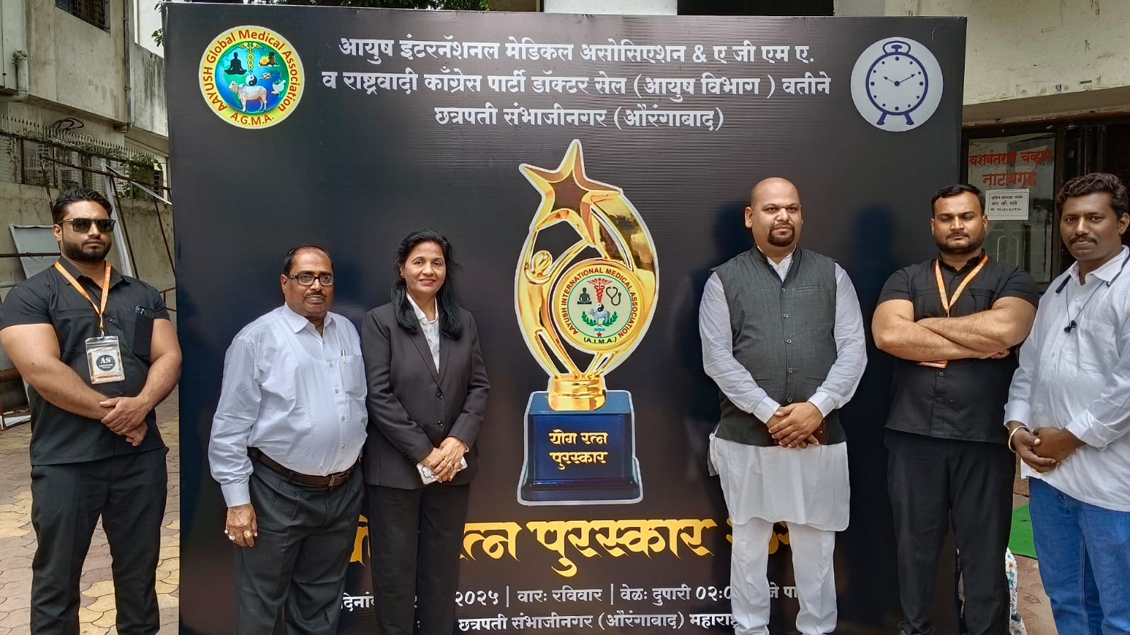 मुंबई प्रतिनिधी/रुपेश मऱ्यापगोळ : बदलापूर येथील सुप्रसिद्ध योग प्रशिक्षक अबीदा लमतुरे यांना आयुष्य इंटरनॅशनल मेडिकल असोसिएशन, ए जी एम ए, व राष्ट्रवादी काँग्रेस पार्टी (अजितदादा पवार गट ) डॉक्टर सेल आयुष विभागाच्या वतीने अतिशय प्रतिष्ठेचा योगरत्न पुरस्कार मोठ्या थाटात उपस्थित मान्यवरांच्या हस्ते यशवंतराव चव्हाण नाट्यगृह छत्रपती संभाजीनगर येथे देण्यात आला.